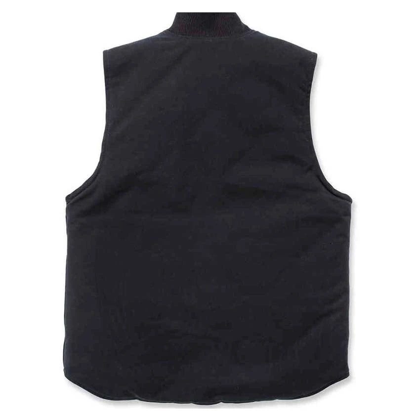 The Carhartt V01 Arctic Vest is like a warm hug on a cold day. Slightly loose for a comfortable fit Length slightly below waist, making room for a tool belt. The 12-ounce, heavyweight firm-hand, 100% ring-spun cotton duck exterior is job site tough. Full-length front zipper with interior storm flap.Â