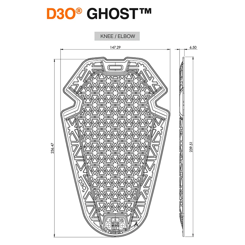 D3O uses patented, patent-pending and proprietary technologies to make rate-sensitive, soft, flexible materials with high shock-absorbing properties. Designed as fit and forget armour for use in motorsports and mountain bike, D3O® GhostTM is made with the revolutionary new Impact Print technology which allows for unrivalled freeform geometry and flexibility. Set of 2 protectors suitable for the knee and elbow area.