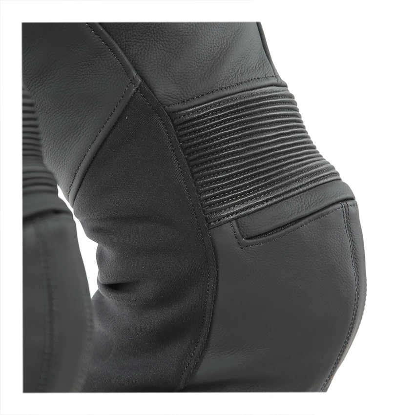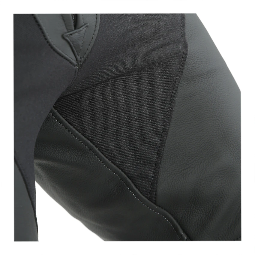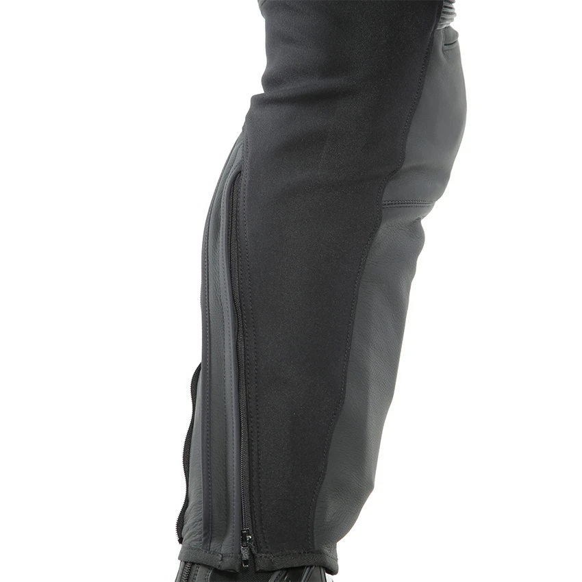 The Tutu leather structure offers great safety, combine that with S1 bi-elastic fabric, and you have the safety of leather with the added comfort of the elastic inserts. For extra added protection the Pony 3 motorcycle trousers are equipped with composite protectors on the knees and soft, flexible Pro-Shape protectors on the hip. A double zipper on the calf ensures an excellent fit and makes for a garment that is very easy to wear.