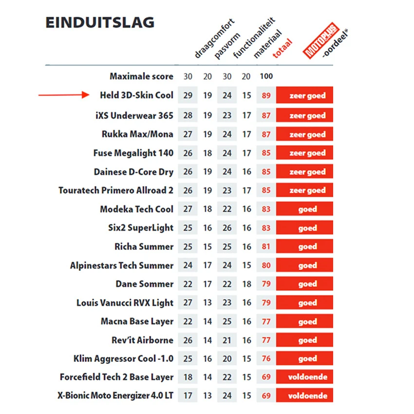 The Held 3D skin Cool top is a good base to wear under your textile or leather motorcycle jacket. This thermal shirt knows how to cool your upper body in summer conditions. It absorbs perspiration and converts it to cooling the body.