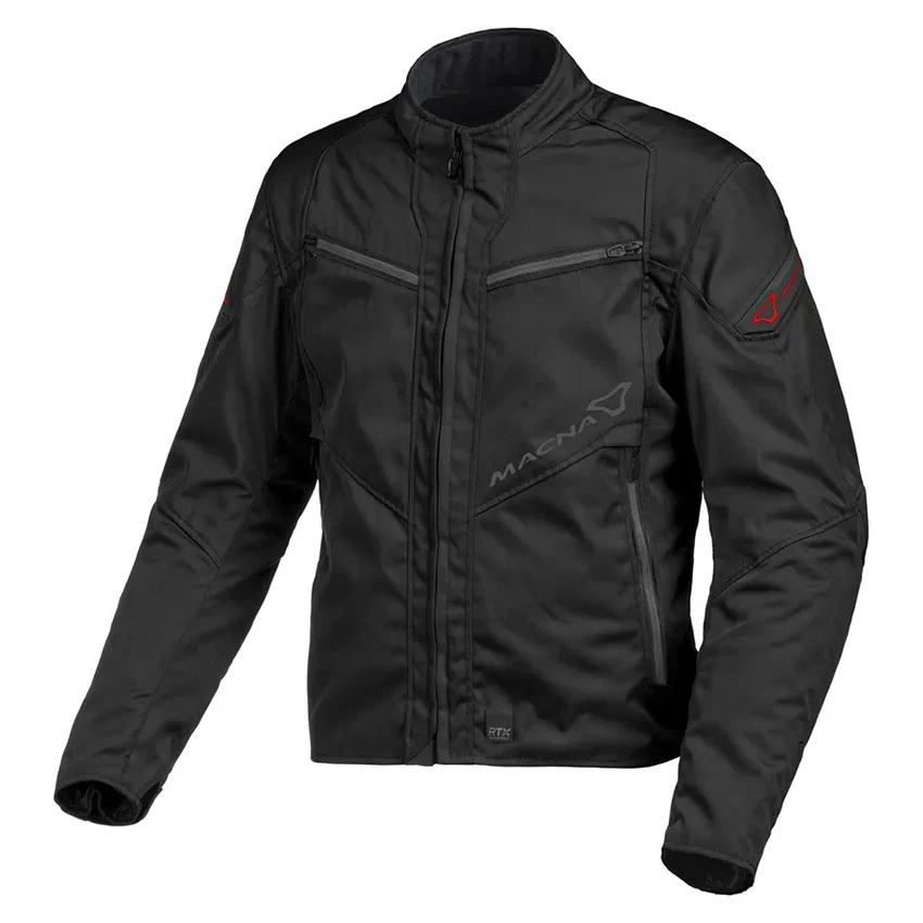 Macna Solute textile motorcycle jacket for men can be worn in multiple seasons thanks to the  Raintex waterproof* membrane and removable thermal liner. On the chest are ventilation zippers for a cooling breeze when temperatures rise. The shoulders and elbows are equipped with Level 1 protectors, and the Solute jacket is prepared for a back protector insert. The reflective details enhance your visibility on the road. Â