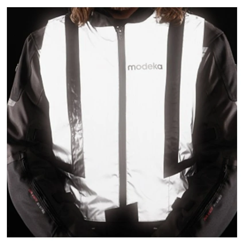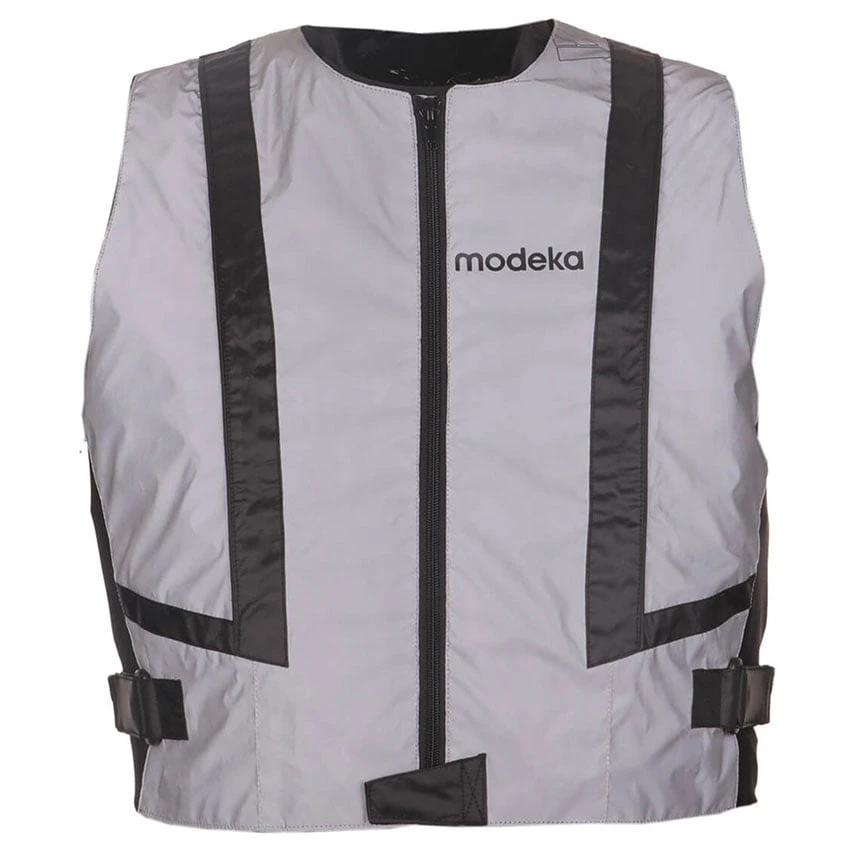 The Modeka Doc Silver is fully reflective, making you more visible compared to a ‘normal’ reflective vest. Because with a fluorescent yellow reflective vest, only the reflective strips are visible in the dark. The Doc has elastic side panels so that it nicely follows the contours of the body. In addition, the vest is equipped with Velcro adjustment options in the side.