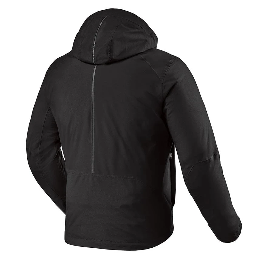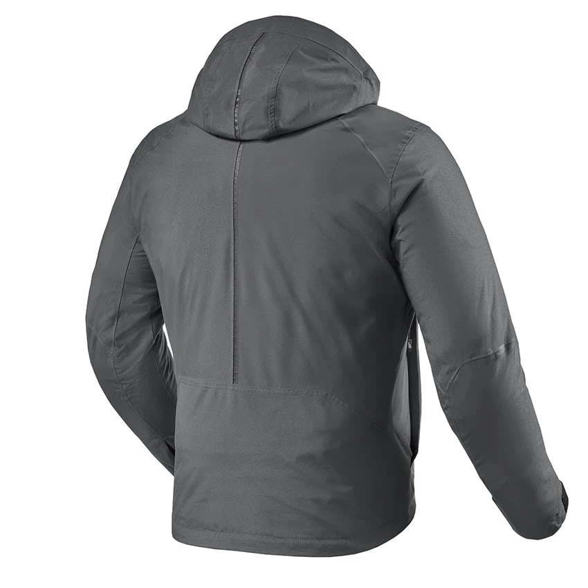 You’ll find enough waterproof pockets to store everything you need on your daily commute when the weather doesn’t want to cooperate. Adjustment cords and tabs make it possible to tailor the fit to your body, and you can use the jeans loops or the short connection zipper to attach it to your pair of riding motorcycle pants or jeans. Reflection on the back and at the detachable hood is added for extra visibility.