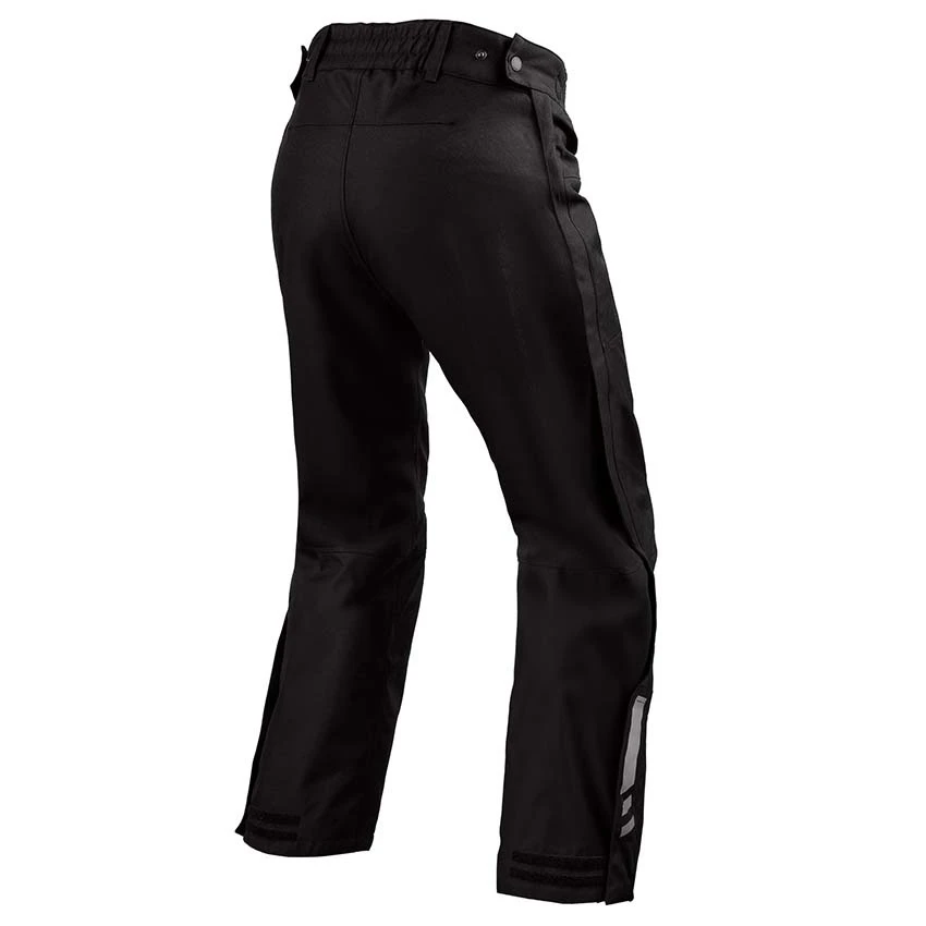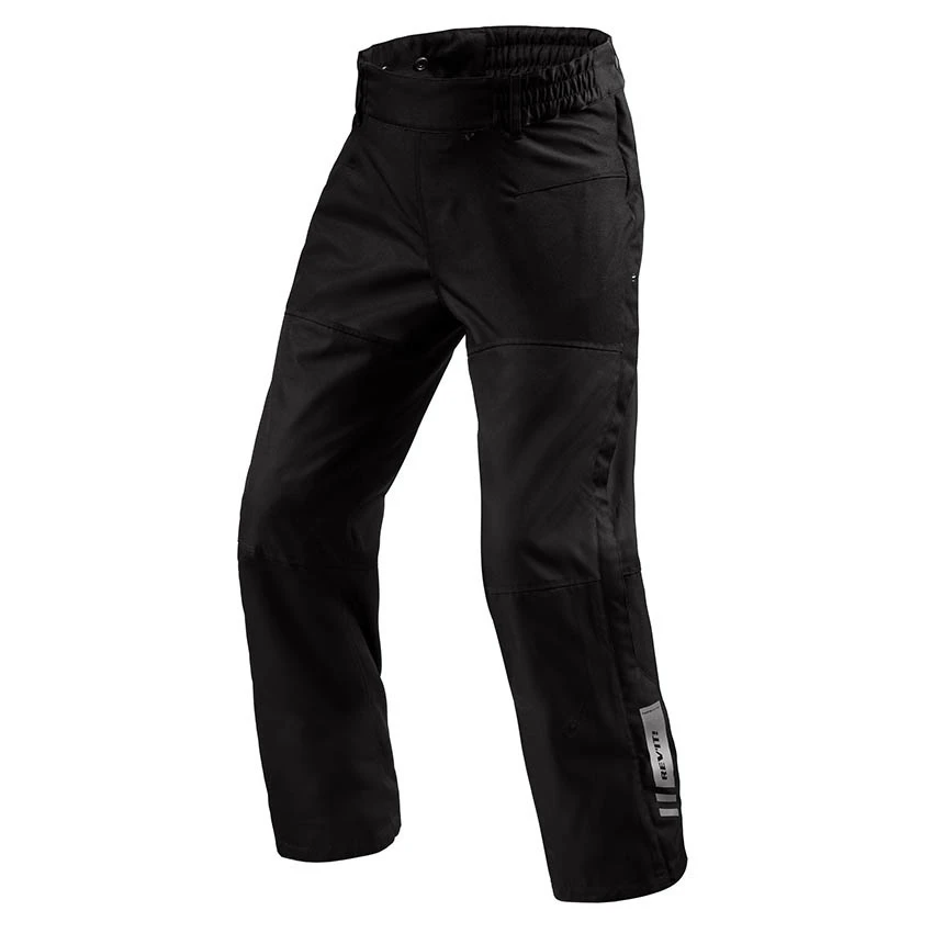The REV’IT Axis 2 H2O motorcycle overpants were designed to meet the needs of the daily commuter. Revit’s designers wanted to make sure that riders could get from home to work and back again dry and safe. The motorcycle overpants are designed to be put on quickly over jeans or chinos at moments’ notice when it suddenly starts to rain, without having to take your boots off. By adding a long two-way zipper on the outside, the motorcycle overpants can be fully opened for easy entry.Â