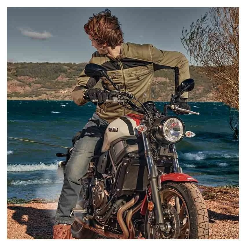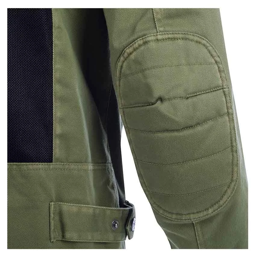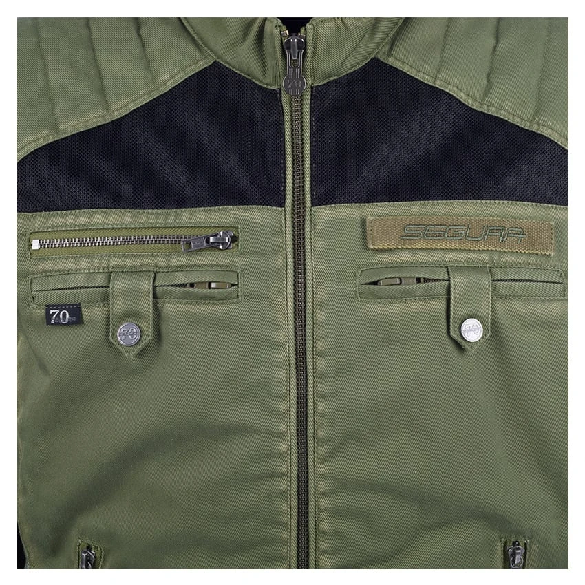 Ride into summer with the Segura District motorcycle jacket. Perfect for warm weather thanks to the Serica and mesh construction. Large mesh panel on the back, upper chest and inside of the arms. Standard equipped with protection on the shoulders and elbows, and prepared for back protection. Adjustable push button tabs on the waist, zipped cuff fastening and padded seams are added for comfort.