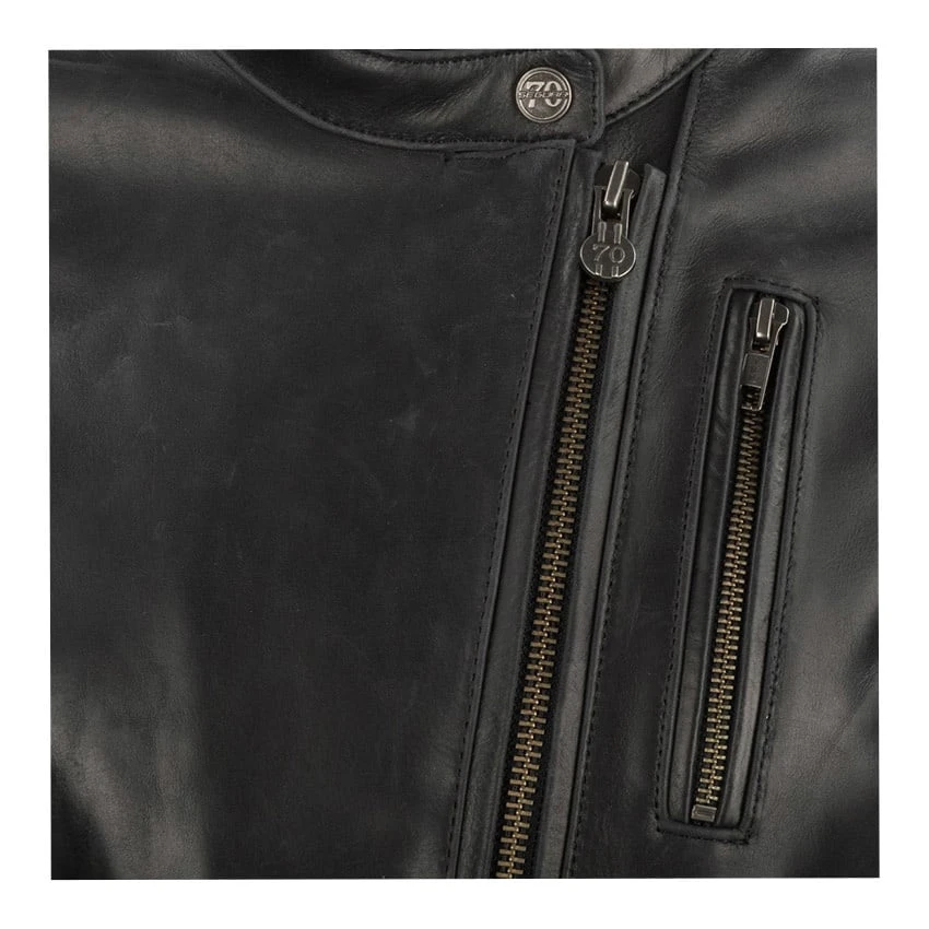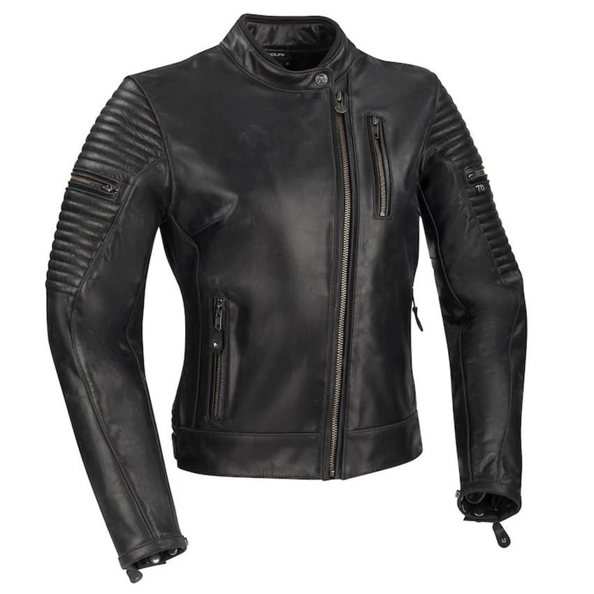 The Segura Dolly ladies motorcycle jacket is made of light weight buffalo leather that is semi-shiny and has a firm feel. The removable 90gr thermal lining is ideal for chilly days. Equipped with OMEGA shoulder and elbow protection. The asymmetrical zipper gives this slim fit jacket just a little bit extra allure.